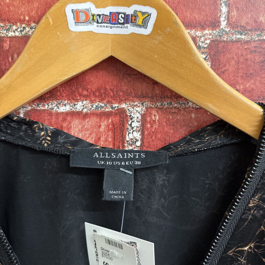 Allsaints Black Silk Floral Mini Dress Size 6